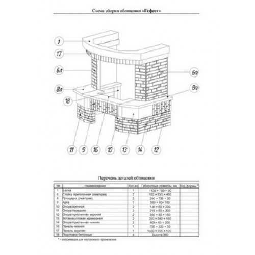 Облицовка камина Гефест изготовлена из натурального колотого камня (мраморизированные доломиты). Площадки камина выполнены из мрамора в стиле "Антик". Балки изготовлены из МДФ с натуральным шпоном. Данная облицовка может обогреть помещение в дачном доме, коттедже до 150 м2, в зависимости от выбранной топки.