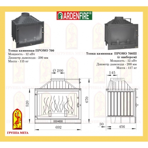 Каминная топка Мета Ardenfire Промо 700
