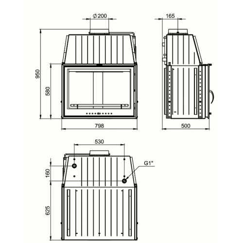 • Диаметр дымохода: 200 мм;