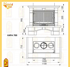 Так же к данной облицовке подходят топки других производителей, ширина фасада которых не превышает 692 мм. Топки с подъемным механизмом (открывание дверцы вверх) - не подходят.