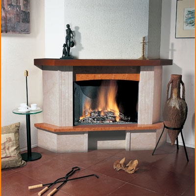 Этот угловой камин изготовлен из светлого мрамора, оснащен полочкой, а также украшен декоративной вставкой из отполированного красного мрамора. Деревянная балка этой модели изготовлена из натурального дерева, а дверца - из жаростойкого керамического стекла.