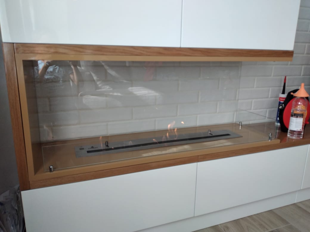 Изготовили настенный биокамин для теплого интерьера дома в коттеджном поселке «Иволги». Размер 1400х600х160 мм. Биокамин был изготовлен по индивидуальному дизайну. Выбор в сторону настенного биокамина сделан для создания акцента в гостиной. Для установки биокамина не требуется разрешение на монтаж, поэтому установка заняла не более 1 часа. В дальнейшем уход за биокамином будет сводится к протиранию пыли и регулярной дозаправке.